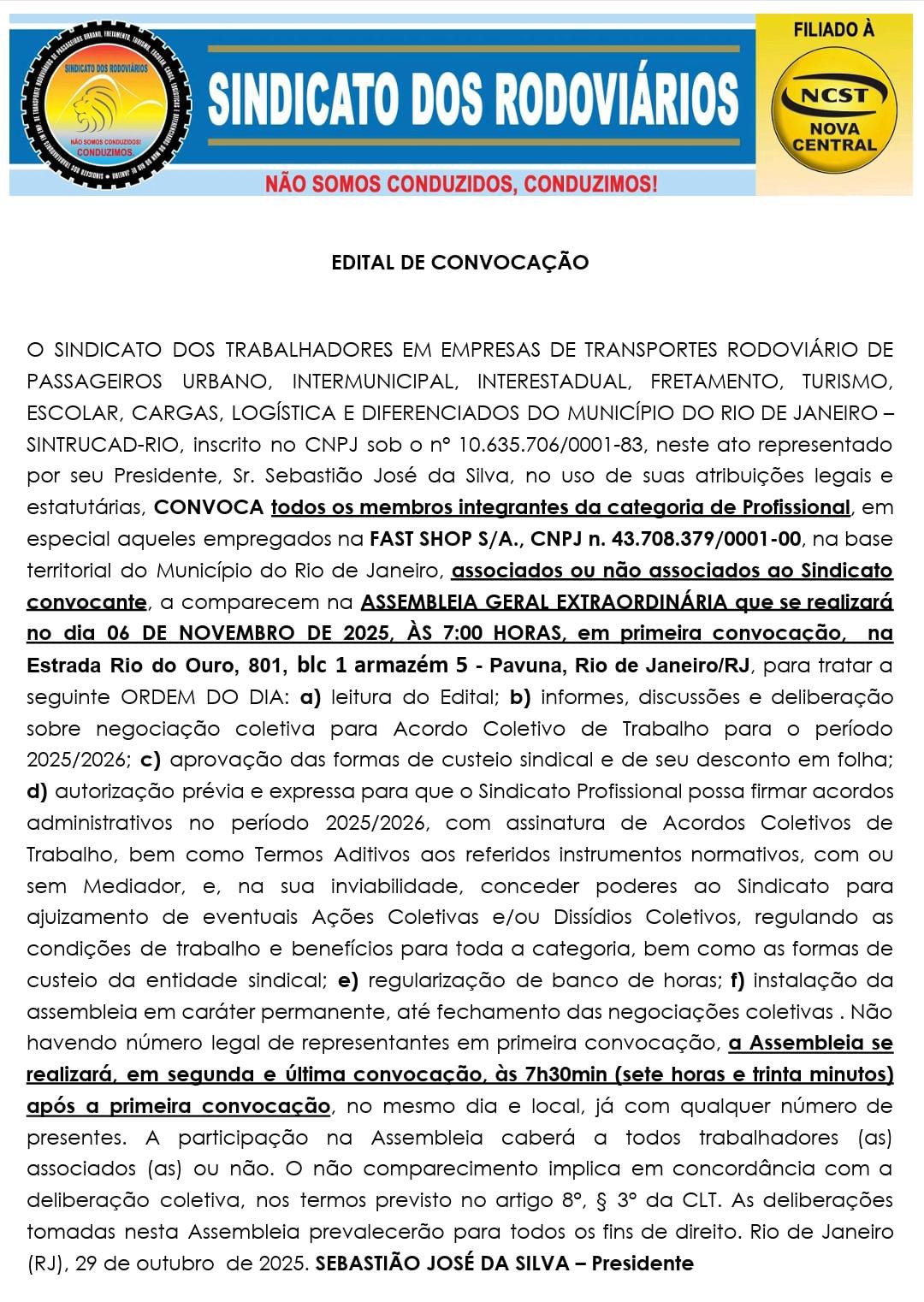 Edital de convocação para a Assembleia Geral – FAST SHOP S/A